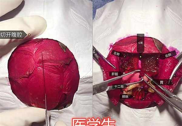 同样是“切火龙果”,忍了美术生,看到医学生:是心肌梗塞的感觉!最后就是医学生切火龙果了,医学生就是非常讲究的了吧切开之前还拿卫生纸掏了一个洞盖上,像做手术一样,先把皮的表面削光滑,之后切开后里面竟然还五脏齐全,真的是很会玩了!网友:是心肌梗塞的感觉!