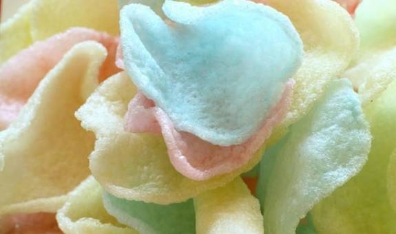 龙虾片,过去:这可是妈妈在饭前最先炸制好的一道小吃,先让馋嘴的孩子垫垫肚子,一大盘子虾片,酥脆焦香有白的红的绿的颜色,虾的味道脆脆的超级好吃~~