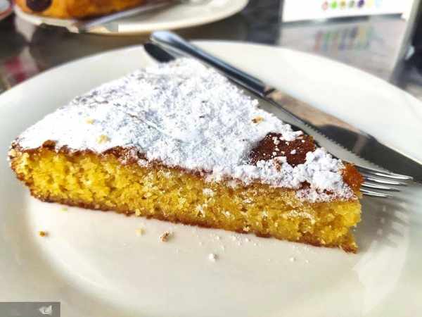 圣地亚哥蛋糕是加利西亚美食中最著名的蛋糕,可以在加利西亚的任何城镇的甜品店品尝到。这块蛋糕的基本成分是:杏仁粉,鸡蛋,糖,柠檬皮和古老配方制成的面粉(尽管目前不再使用了)。