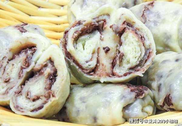 8.好了,一道暄软香甜的山药红豆卷就做好了。