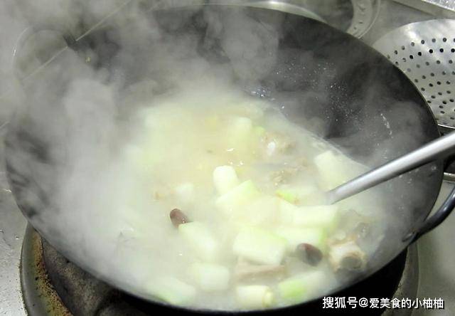 4.20分钟以后掀开锅盖,把冬瓜用凉水冲洗干净倒入锅内,中火再炖15分钟。15分钟以后排骨已经煮烂了,出锅前放入食盐4克,胡椒粉2克,鸡粉2克,排骨汤食盐放早了营养不容易溢出,用勺子搅拌化开调料就可以起锅了,要是家里的小火排骨就要多炖一会儿,一般要炖1个小时。