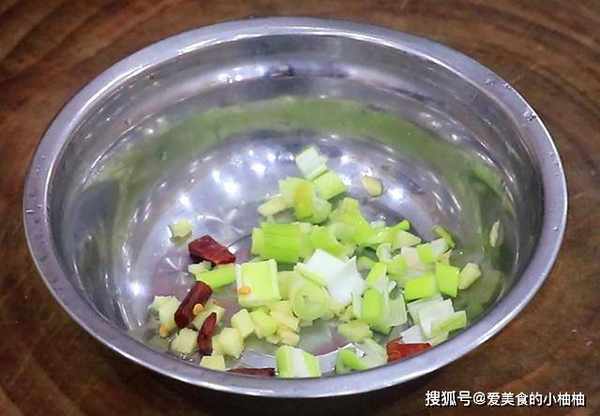 3.准备红椒半个,切成菱形片用来配色。生姜拍散切成末。大葱破开切成葱花,再抓入几粒干辣椒备用。