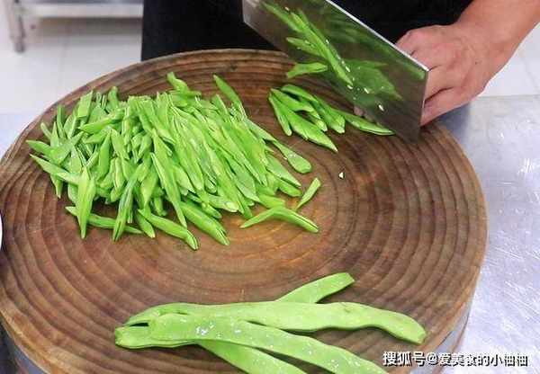 1.准备适量的四季豆,用手掐掉四季豆的两头,顺便把两边的老筋也一同扯掉,择好以后放入清水中,加入一勺食盐,用淡盐水洗四季豆,洗得更加干净,还能去除农药残留,洗干净以后斜刀切成条备用。