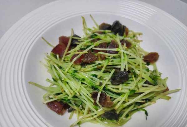 2、如果炒豌豆苗,也可以直接炒或者加一点皮蛋这样吃,味道很不错。