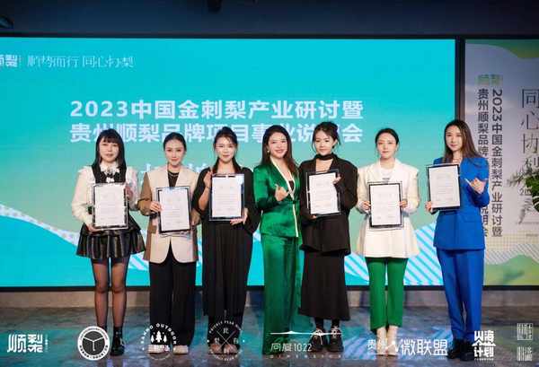 大会休息结束,贵州添兴顺梨食品有限公司总经理范婷向与会领导、专业及参会人员作了“顺梨”项目说明,并现场推出了春播一粒种,秋收万斤果顺梨“种子计划”。呼吁大家在刺梨领域轻资产投资创业、共享资源彼此赋能,为家乡做贡献,一同举起“乡村振兴”的大旗,共同推进安顺大坝村的金刺梨产业发展,并向已经加入顺梨种子计划的人员和机构代表现场颁发了证书。