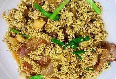 怀着一颗好奇的心,我忍不住第一口咬下去,吃了从来没吃过的“棕树花”。又称糙米卷、褐笋、糙米。宗树的花开在宗树的枝叶和树干上。每片叶子的连接处都有一个花蕾,经常开出金黄色的花,像米粒一样。棕树花是一种很好的果蔬,营养丰富,具有消炎、明火、降压等药用功效。功效,制作方法炒腊肉,炖鸡,炖汤,上桌,以为是鱼子