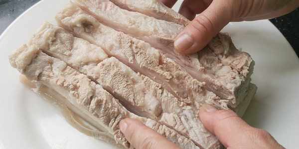 这块五花肉真的是上等的,一层肥一层瘦,层次分明,还没做熟呢,就让人看到都想咬一口了,这么好的五花肉,我们就不红烧了,铁头来跟大家分享一个广东非常有名的吃法,那就是广式烧肉,在家也一样能做得非常香哦,个人感觉比外面买的吃着更有味道,更过瘾。