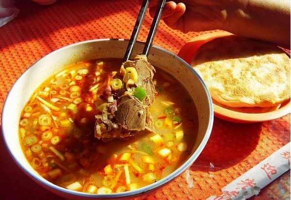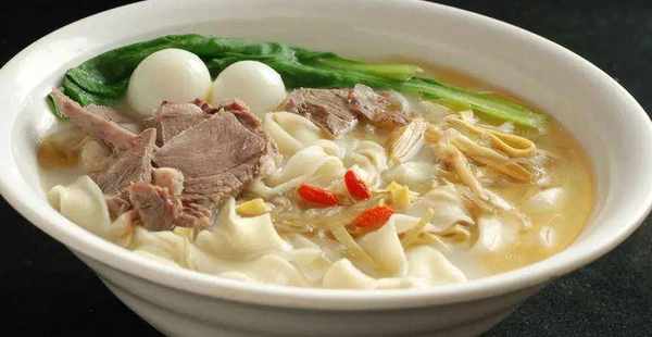 烩面里面有汤、有菜、有荤、有素,以味道鲜美,面宽面长闻名,河南的烩面馆开遍了咱中国的角角落落。
