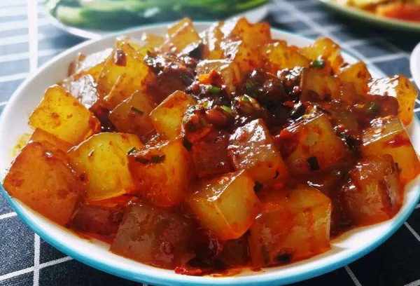 现在正值春季,蒜薹马上要下来了,炒凉粉里面加一些蒜薹,再加一些陈醋,在锅中多次翻炒,炒出香味,十分的可口下饭。