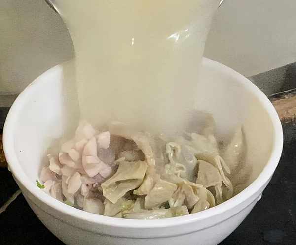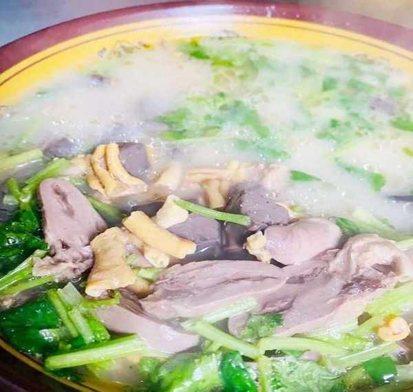 这道鸡汤里面有鸡血、鸡肠、鸡肝,还有粉丝,鸡汤鲜美,鸡杂鲜口没有异味,暖身开胃,非常好吃。