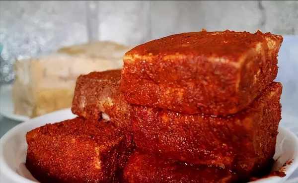玉溪油焖豆腐是云南省玉溪市的传统名吃。玉溪地区制作卤豆腐历史悠久。上世纪30年代,在酒咸豆腐的基础上改进配方,用熟油浸泡,精心制作出别具一格的油咸豆腐。因为是用油浸泡,隔绝空气,所以既保持了炖烂固有的风味特点,保质期也更长。油焖腐烂外表油亮,颜色深红;内质细腻,呈乳白色;味道鲜香,润润柔软,咸辣适中,营养丰富,清爽开胃,是居家日常食用的佳品。