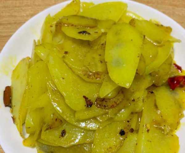 云南人爱吃土豆,这边的高山土豆软糯甘甜,果肉嫩黄鲜美,咬一口香味就在唇齿间弥漫开来,让人爱不释手,赵曼乔削了两个土豆切成薄片,锅中放油烧热,爆香干辣椒和蒜末,翻炒片刻,土豆就熟了,又薄又嫩入口化渣,深受大众的喜爱。