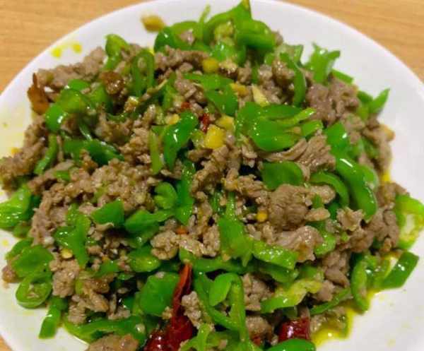 赵曼乔一个人的时候吃两个菜就够了,但是多了一位客人,她自然要多做几道菜,第一道菜就是这个青椒炒肉,把猪肉切成片腌制一下,然后下锅炒到断生,然后捞起来备用,热油炝香干辣椒,然后把青椒炒一下,再倒入肉片,翻炒片刻,香喷喷的青椒炒肉就做好了,又香又滑,真是滋味无穷,非常下饭。
