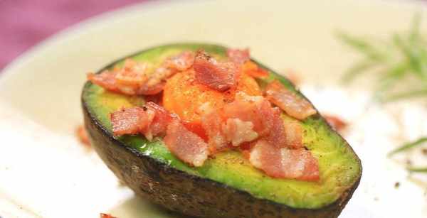 取出烤好的牛油果培根蛋,用剩下的牛油果泥,加入少许盐和黑胡椒,拌匀做成配菜,放在鸡蛋旁边即可。