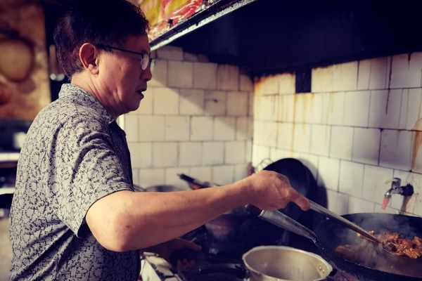 看這個土雞館的環境建設,就知道,土雞館有些年頭了。糧食土雞館共有兩間房,一間房作為廚房,一間房用作餐廳,當然還有很大的後院。土雞館裡有三名工作人員,一名掌勺炒菜,一名配菜員(幫廚),一名收銀人員,掌勺人是店裡的老闆。