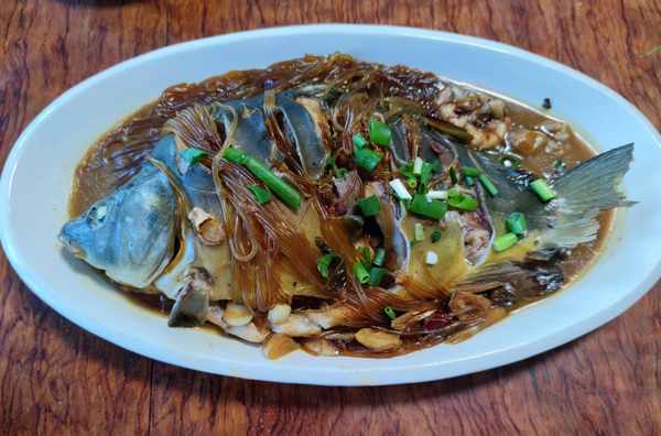 所需食材:三道鳞鲤鱼一条、土豆粉条、五花肉片、黄豆酱、啤酒一瓶、干辣椒段、葱姜蒜、白糖少许、盐、一品鲜酱油、八角一瓣