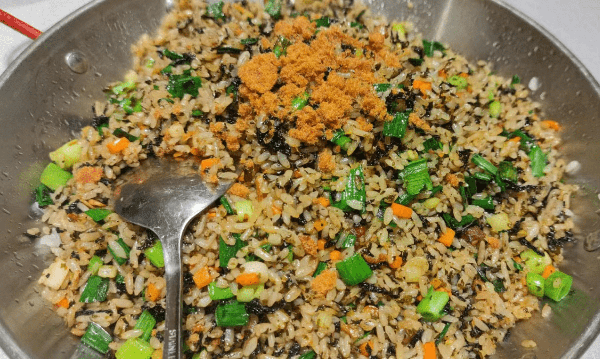 特色紫菜饭,里面配料丰富,有肉松紫菜虾干等,米粒吸收了这些食材的香气,粒粒喷香口感分明。