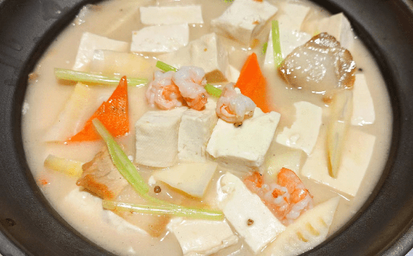 咸肉鲜笋豆腐煲:浓白的汤头配米饭超赞的,咸肉虾仁鲜笋豆腐都各具口感,豆腐吸收了汤头够味够滑嫩。