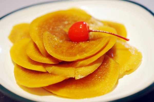 芥末鱼肚作为前菜,爽脆的鱼肚带着芥末的微呛,味蕾瞬间感受到双重口感,还有酱萝卜老醋花生,也是很开胃。