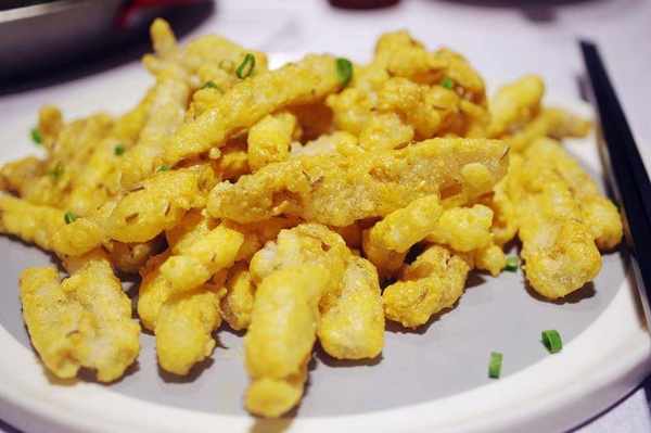 咸蛋黄焗双菇:带着咸蛋黄的香酥,杏鲍菇香脆软嫩,别具口感。