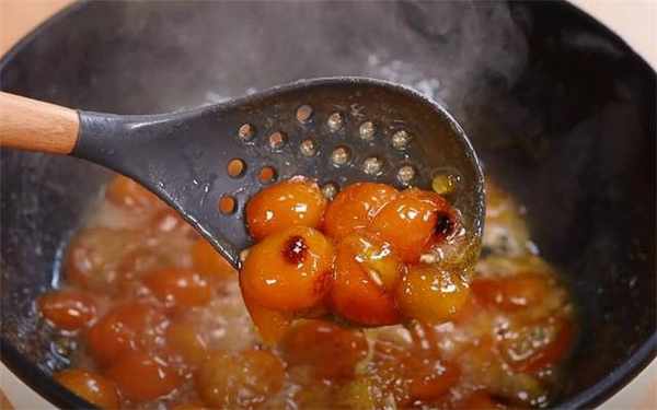 5.全程小火一直熬到这种非常粘稠的状态,我们的冰糖金桔就做好了。