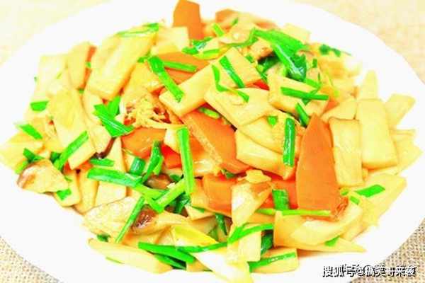 锅内再烧油,放入葱姜爆香,倒入焯过水的杏鲍菇和胡萝卜快速翻炒均匀,再倒入鸡蛋和韭菜,加入食盐2克、蚝油5克增鲜、生抽5克翻炒化开调料,食材入味以后即可装盘上桌。