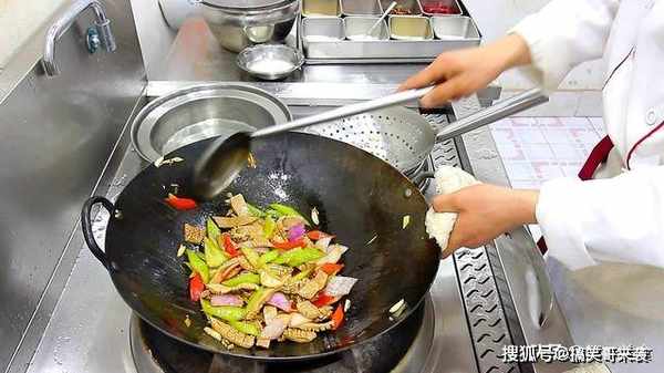 倒入腰花,开始放入调料,加入白糖,老抽,料酒,翻炒化开调料后,再加入蚝油,味精,生抽快速翻炒后,就可以出锅装盘了。