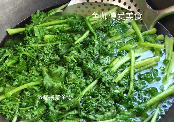 注意这个季节的苔菜很鲜嫩,不要焯水时间过长,否则苔菜就会发黄,发硬,影响营养和口感。