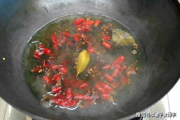 。锅内烧油,油烧热以后,放入青花椒爆香,倒入小料翻炒出香辣味。然后从锅边淋入适量的清水,加入生抽5克,陈醋5克,食盐2克,白糖少许提鲜,味精1克,老抽2克。把调料搅拌均匀,盛放在盆中备用。