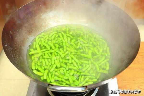 。然后倒入毛豆,水再次烧开后转为中火煮6分钟,把毛豆倒出来,放在冷水中过凉。
