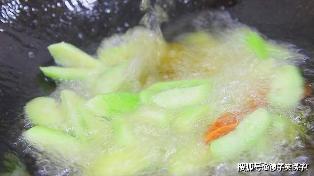 油温不能太高,倒入丝瓜滑一下油,