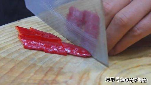 红椒半个,切成菱形片。