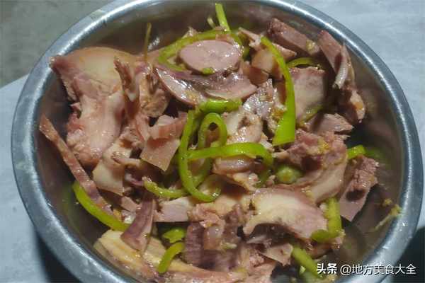 第1道菜是凉拌猪杂,这个猪杂是从外面买回来的,因为他是把猪脸,猪耳朵,猪肺,猪肝这些混合在了一起,所以价格还算比较便宜,买回来之后切了一些青椒丝,再拌了一些料汁放在一起搅拌均匀,就能够直接上桌,也算是比较简单好做的一道凉菜。