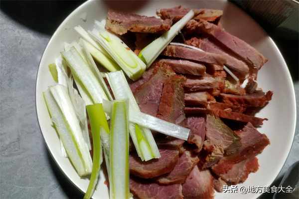 第2道菜是里脊肉,这个里脊肉是小黄他自己做的,因为考虑到里脊肉的价格比较贵,所以就买了一些里脊肉回来卤,卤完之后放到冰箱里面,等到吃的时候拿出来直接解冻切成块,再配上自己调的料支,味道也算可以,这个料汁一般就是酱油,蚝油,葱花还有蒜。考虑到自己的老公在吃这道菜的时候,喜欢吃一些葱,他又切了两根葱白放到肉的旁边。