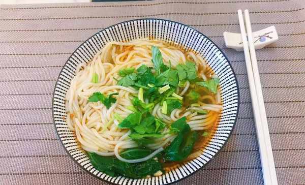 晚餐:菠菜素米粉。