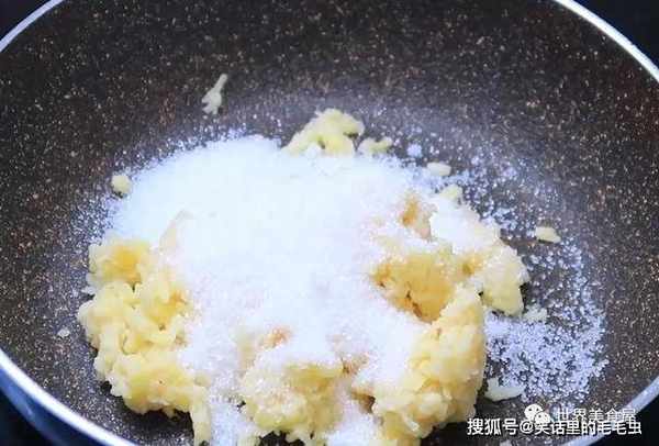 ②蒸熟的紫薯碾碎,加两三勺白砂糖,混合搅匀。