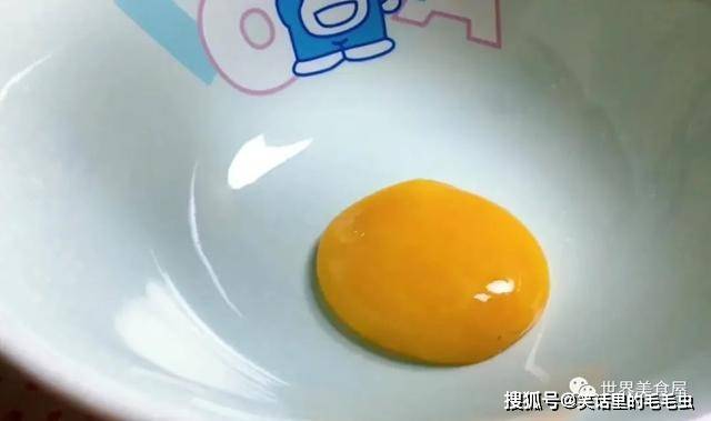 ④接着在碗中放一个蛋黄,蛋清不要。