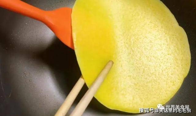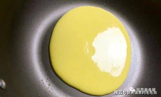 ⑧将面糊摊平,简称鸡蛋面皮。