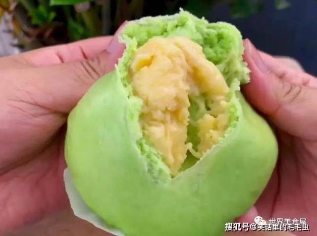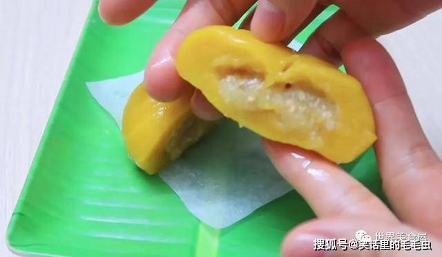13、咬一口,里面是香甜的绿豆馅,非常好吃。