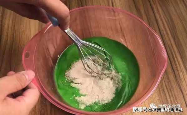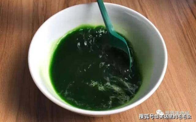 ③在菠菜汁中放3克酵母,三勺白砂糖,搅拌均匀。