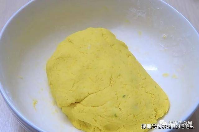 ③就得到上面这个黄色的南瓜面团,放一旁备用。