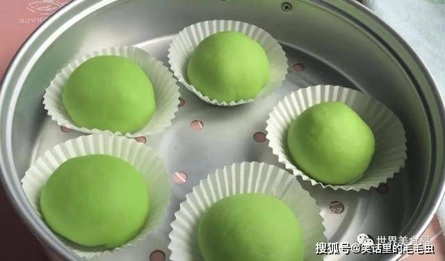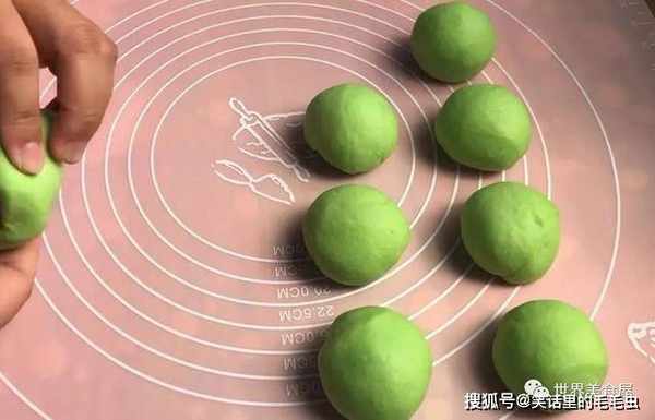 ⑤变成绿色面团,醒发15分钟。