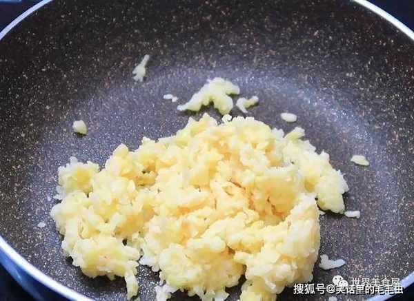 ⑦用小火热锅,倒入一勺鸡蛋面糊。