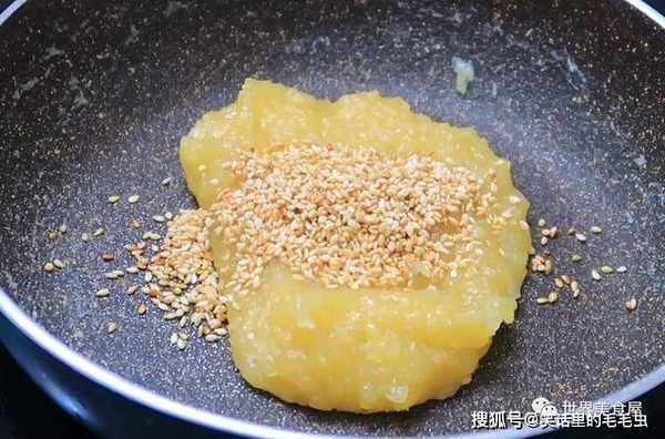 ⑥继续加三勺芝麻,搅拌。