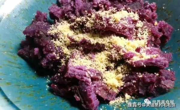 ③得到上面的紫薯泥馅料,放着备用。