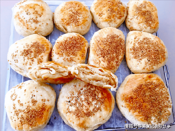 11、按照这个方式制作的油酥烧饼,层次分明,外酥里嫩,香酥掉渣,尤其有芝麻的搭配,味道更是赞不绝口,要趁热直接吃,油酥起到的效果很关键,香味、咸味都有了,上桌一会而就光盘,老人孩子都爱吃。