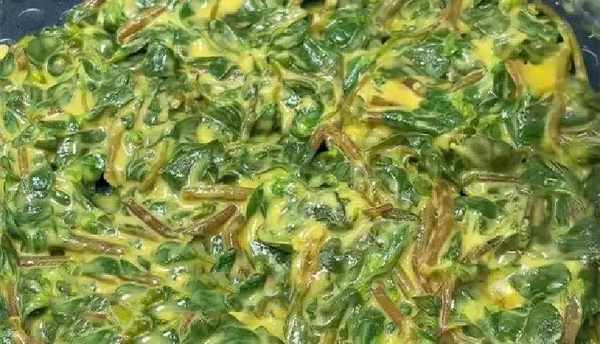 3.马齿苋切好放在盆里面,加入适量的胡椒粉,食盐。然后鸡蛋打入碗中,用筷子搅拌均匀,把鸡蛋液倒入里面,再放入适量的面粉,用筷子给搅拌均匀,放一旁备用;