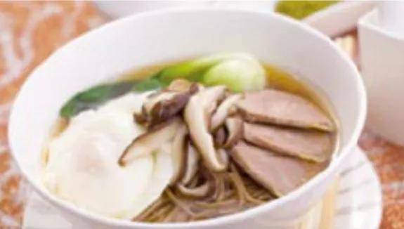 [材料]荞麦挂面200克,卤牛肉75克,青菜心60克,香菇10克,鸡蛋1个。葱末、姜末、蒜末各10克,精盐1/2小匙,味精1/5小匙,鸡汤500克,香油2小匙,植物油30克。