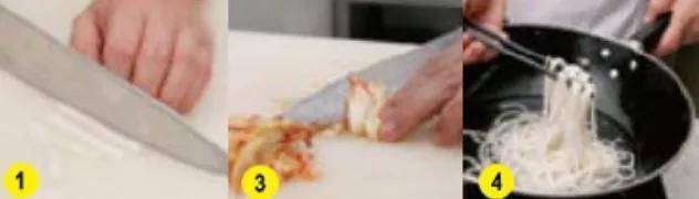 ②锅内加水烧开,下入高粱挂面煮熟捞出,投凉,挑入碗内。