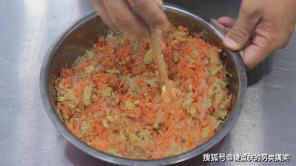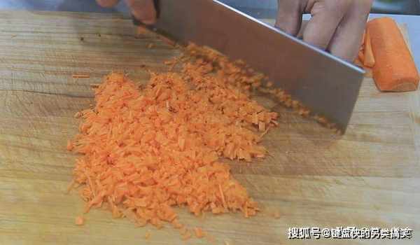在等待发酵的时间,我们准备一下馅料,胡萝卜切成胡萝卜粒。